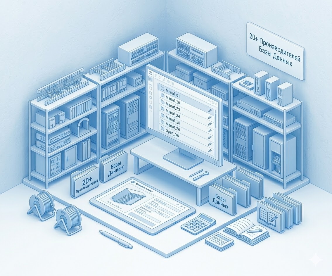 Базы моделей оборудования более чем 20 производителей структурированных кабельных систем, шкафов и кабеленесущих систем. Все базы открыты для редактирования и пополнения