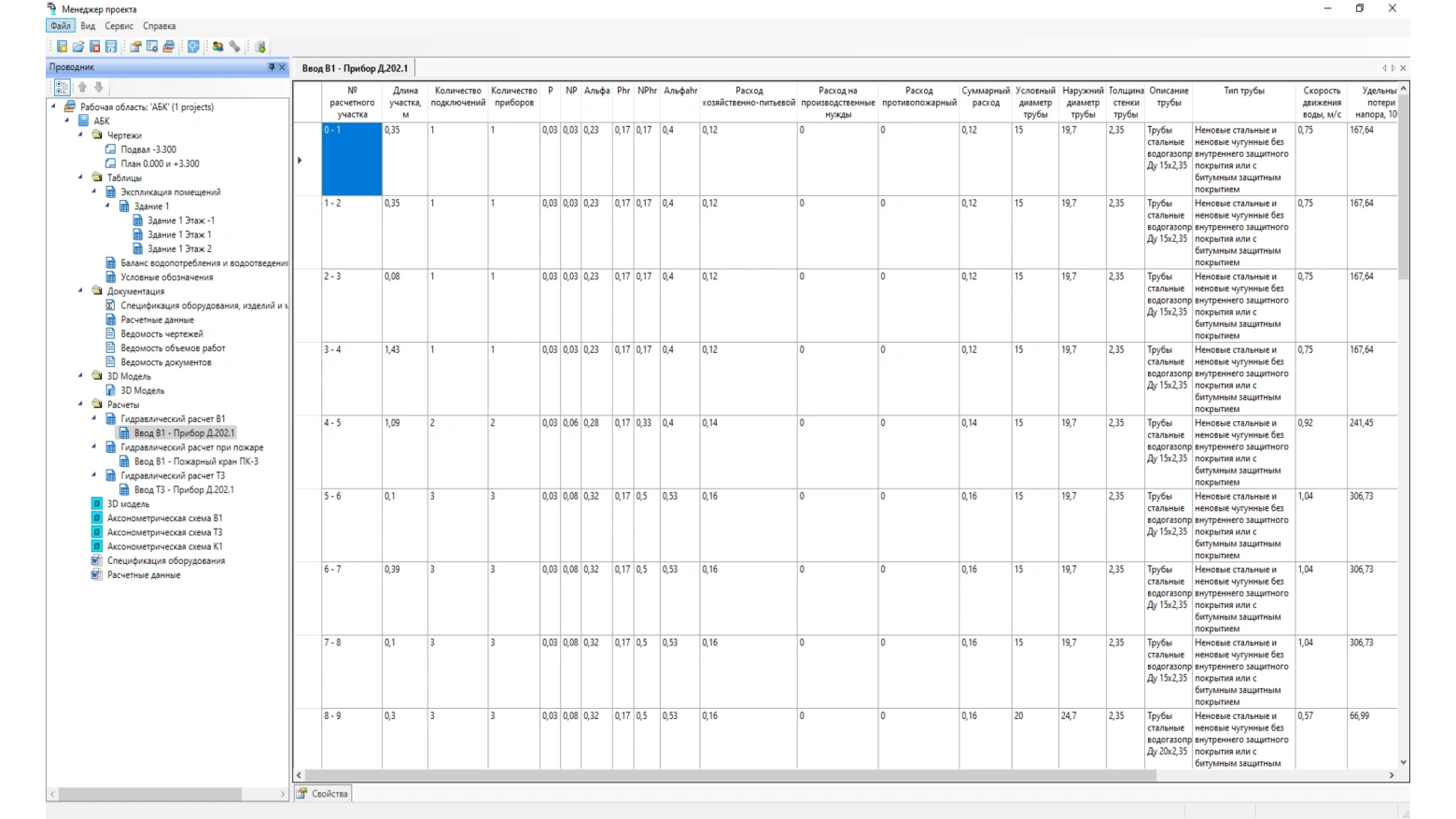 Строгое соответствие требованиям СНиП 2.04.01-85*, СП 30.13330.2012, СП 30.13330.16 и СП 30.13330.2020. При проведении расчета программа просчитывает трехмерную модель систем, вычисляет среднюю скорость воды и гидравлического уклона. На основе этих расчетов осуществляется подбор арматуры, приборов, диаметра труб и формируется отчет по каждой системе