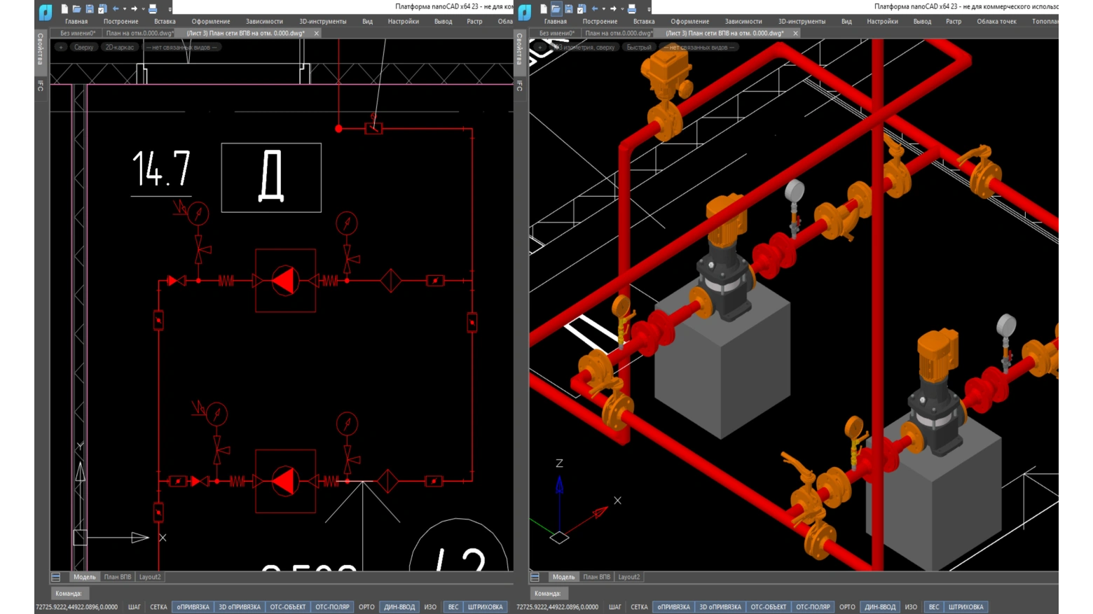 Поддержка экспорта в обменные форматы (*.ifc, *.RBIM, Revit и CADLib Модель и Архив) позволяет легко встраивать информационные модели инженерных систем, выполненные в nanoCAD BIM ВК, в сводную модель проектируемого объекта, реализованную на любой САПР/BIM-платформе