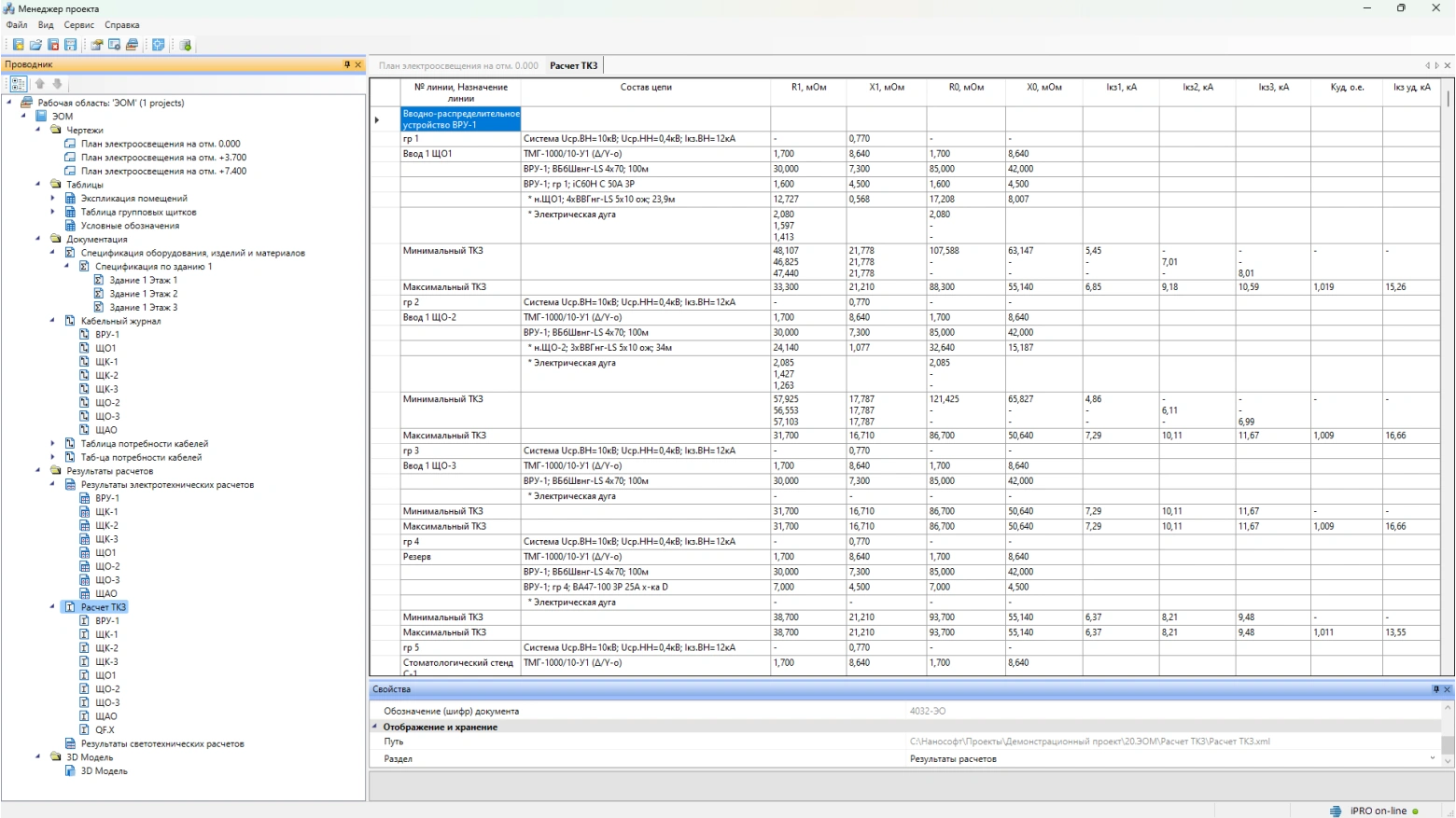 Расчет токов одно-, двух- и трехфазного короткого замыкания по методикам ГОСТ 28249- 93, «Петля фаза-ноль»