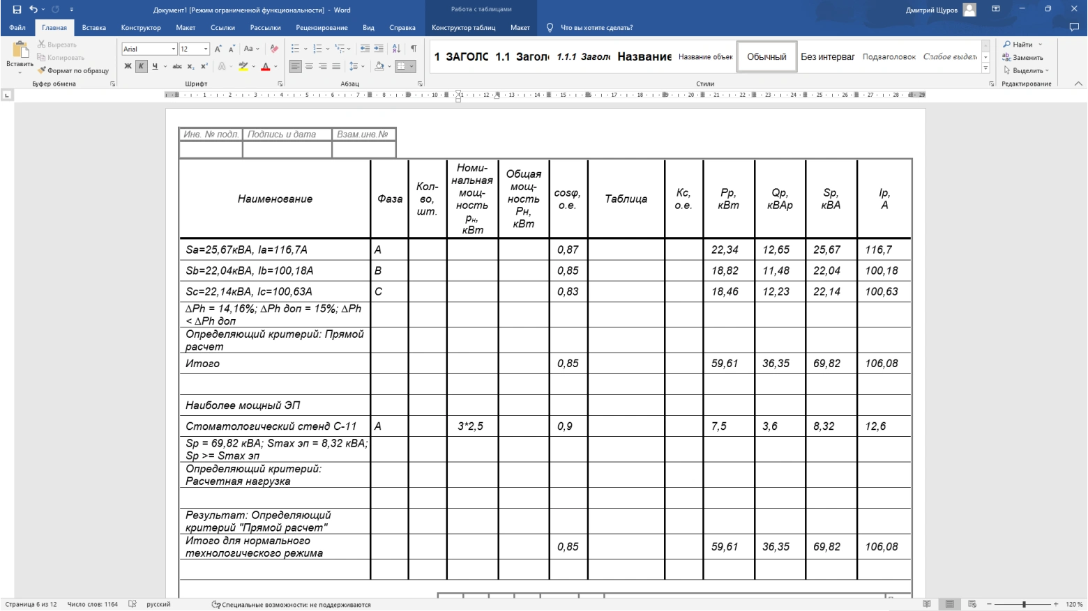 Расчет электрических нагрузок по методикам РТМ 36.18.32.4-92, СП 256.1325800.2016, ТЭП