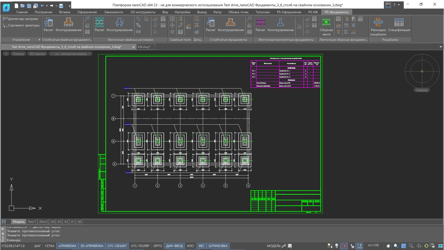 Подготовка схем расположения и чертежей столбчатых фундаментов на свайном и естественном основании