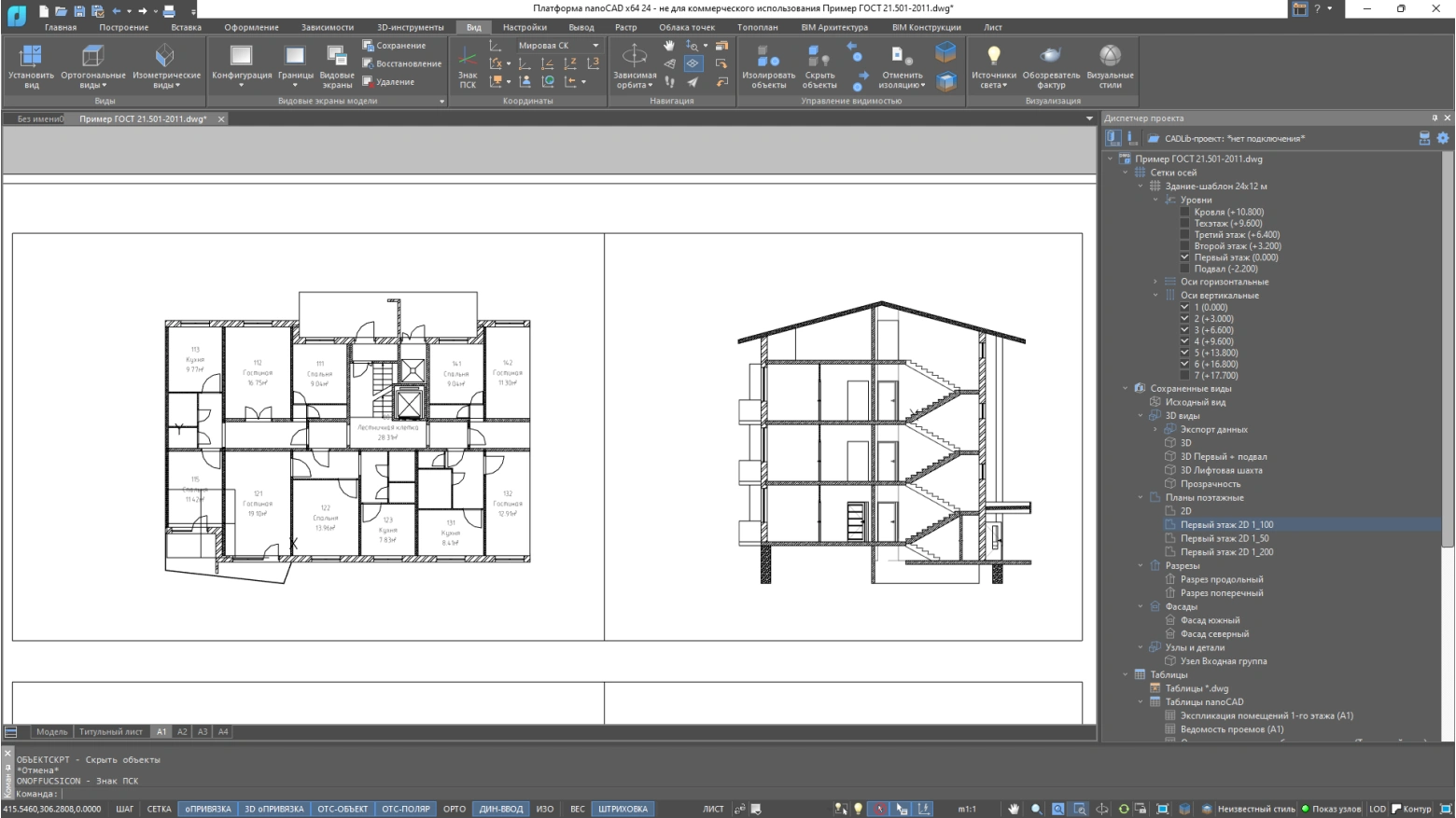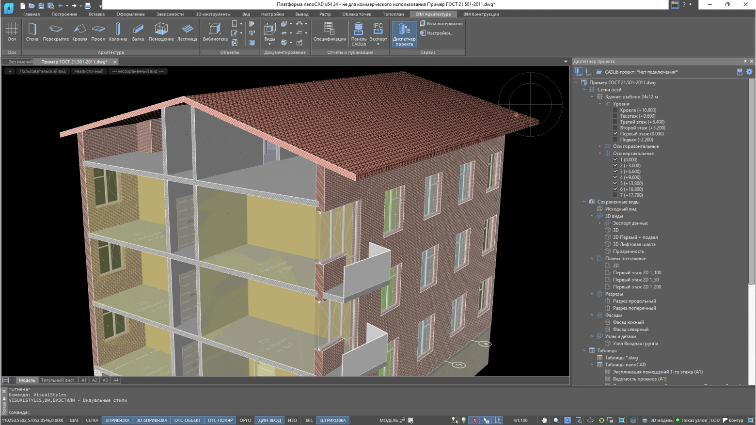Удобная навигация по модели с возможностью создания новых видов, фасадов, разрезов, поэтажных планов и др.