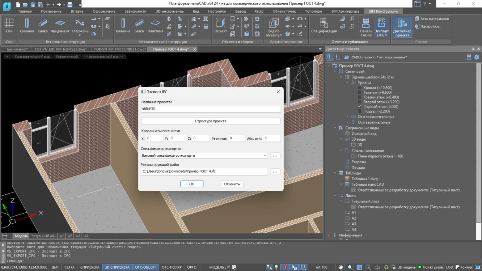 Экспорт данных в сторонние программные комплексы (SCAD/ЛИРА/ЛИРА САПР и т.д.) и внешние форматы (IFC, 3D PDF и др.)