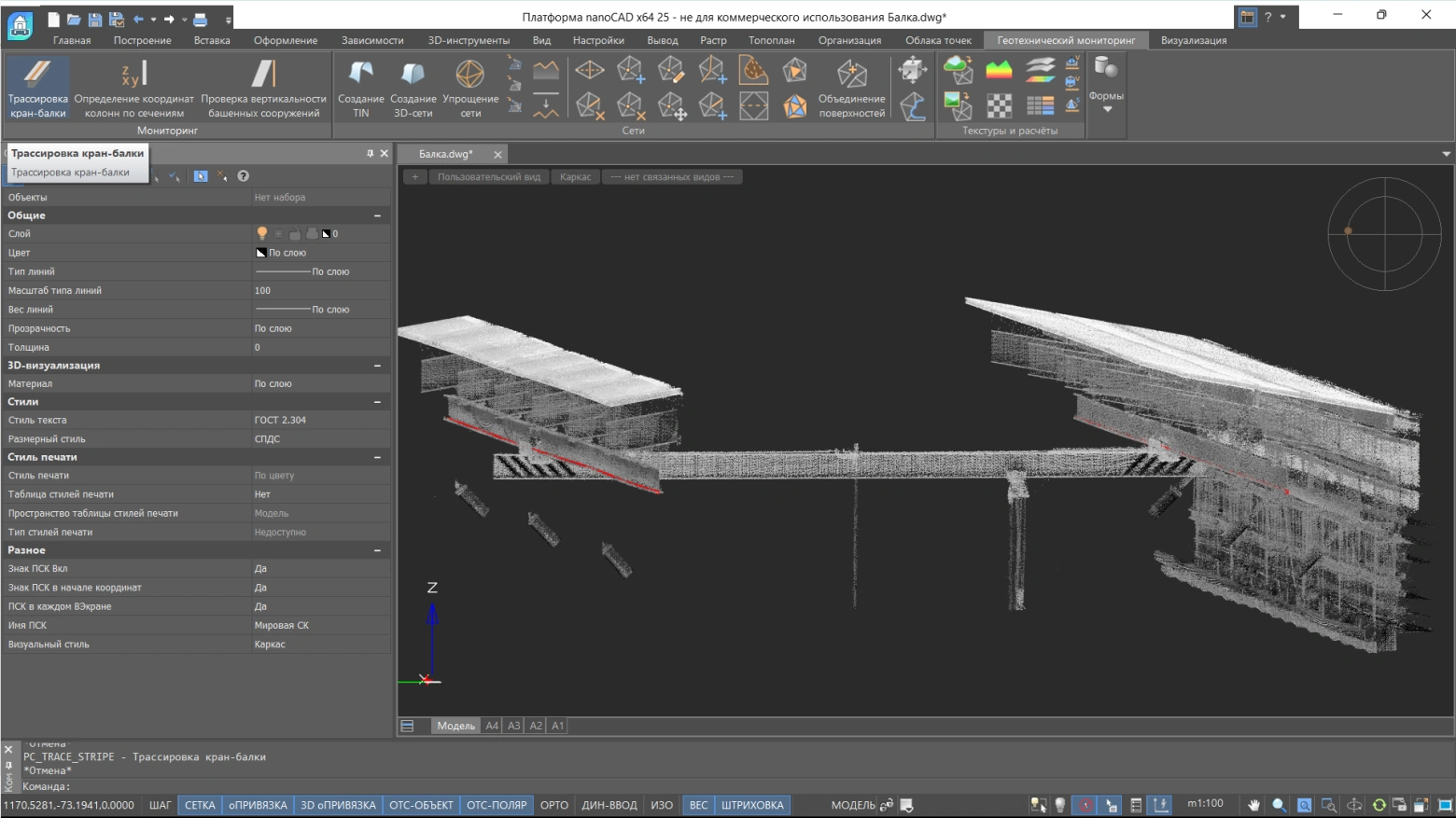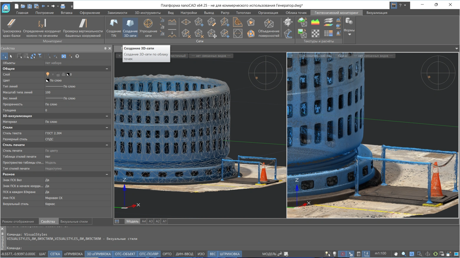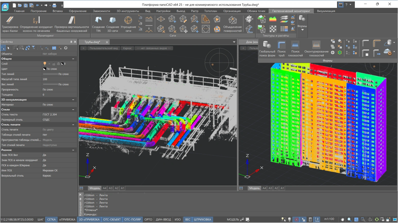 Инструменты создания 3D-сети по облаку точек, а также команды редактирования и текстурирования построенных поверхностей. Могут использоваться для моделирования сооружений, конструкций, деталей и др.