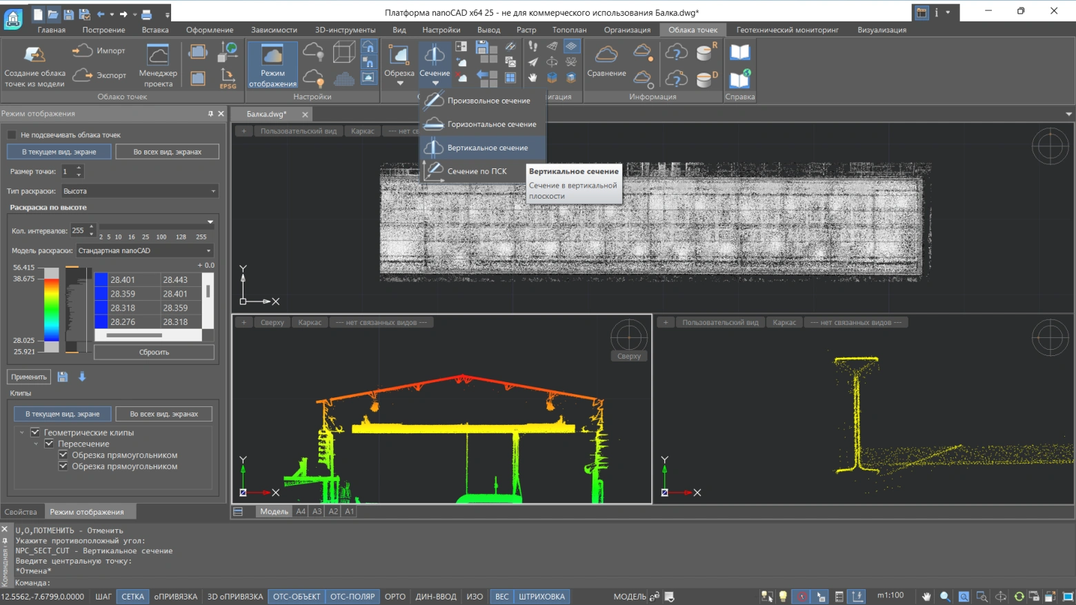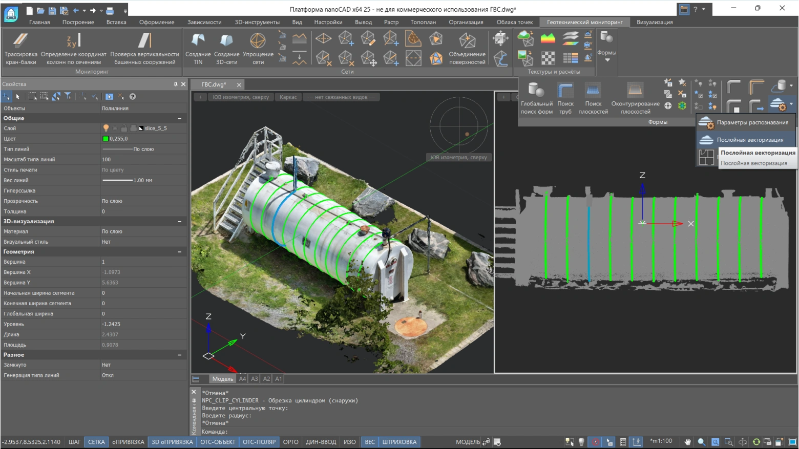 Автоматическое построение множественных сечений облаков с заданным шагом, их последующая векторизация и создание растровых изображений