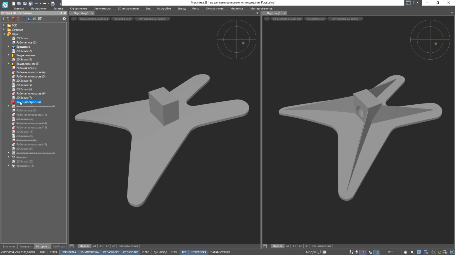 Отслеживает изменения в 3D-модели и управляет ими. Сохраняет операции, позволяет вернуться к предыдущему состоянию модели и изменить выполненные действия. Делает более удобным процесс редактирования и добавления элементов, упрощает внесение изменений в детали и сборки, сохраняет варианты моделей